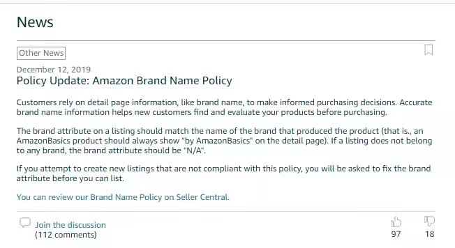 亚马逊对品牌政策进行了更新,根据公告显示,消费者所作出明智的购买决定依赖于品牌名称等详细的页面信息,而准确的品牌信息将会帮助客户在选购时找到相应的产品,并对产品进行评估。因此,Listing上的品牌属性应该与生产该产品的品牌名称一致,若Listing不属于任何品牌,则品牌属性应填写为“N/A”。例如,AmazonBasics产品应始终在商品详情页面上显示“ by AmazonBasics”。若商户试图创建不符合该政策的Listing,系统则会要求其在列出之前先对品牌属性进行修复。
