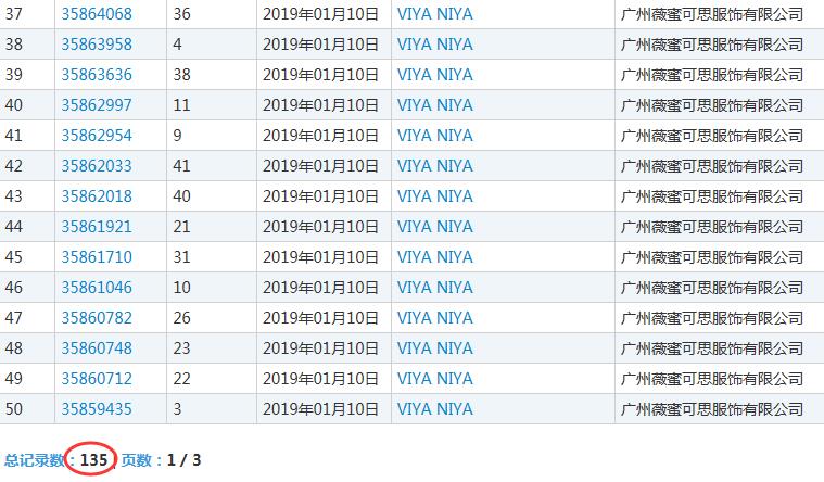 薇娅的商标保护意识是否到位呢?我们查询到商标网的信息显示,有关“薇娅”商标315件,“VIYA”商标135件,其中申请人多数为“广州薇蜜可思服饰有限公司”(以下简称薇蜜可思),企查查显示,该公司股东分别为董海峰和黄薇,其中黄薇是薇娅的原名。可以看出,薇娅也是很早就开始对个人商标的进行申请保护了。