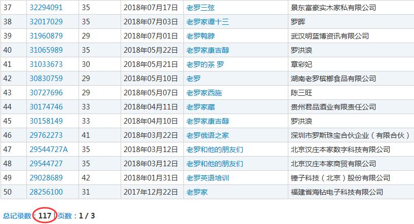 除此商标外,老罗的商标申请各类别共计117件,前锤子科技公司注册的“老罗”相关的商标也才9件。说明老罗的商标保护意识非常薄弱,商标保护意识的缺失的确会使名人降低自身的商业价值。
