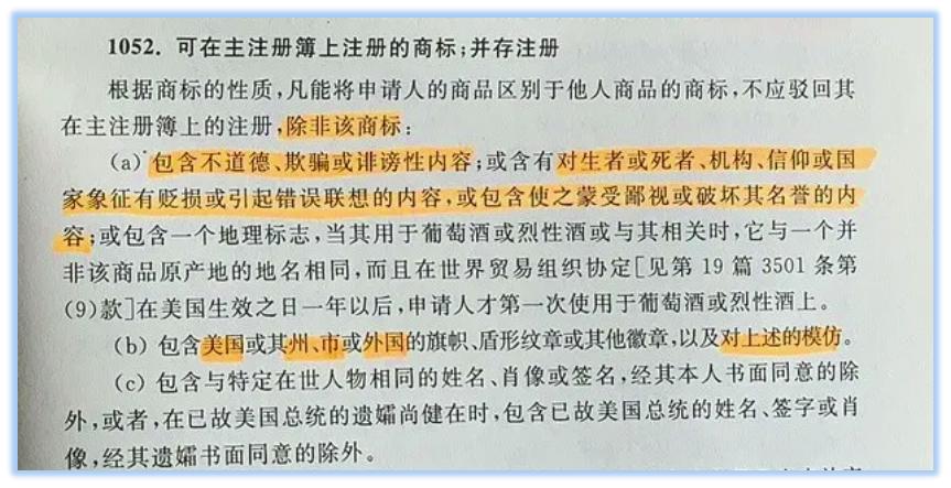 美国《商标法》(兰汉姆法)并没有与我国《商标法》第十条第一款第(八)项“不良影响”完全对应的条款,最接近的应该是第1052条——