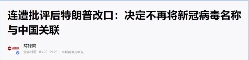 据美国有线电视新闻网(CNN)3月24日报道,特朗普在接受福克斯电视台(FOX)采访时表示,他决定不再使用“中国病毒”这一说法。“我决定不再用这一点大做文章了。”(I decided we shouldn't make any more of a big deal out of it)特朗普说道。